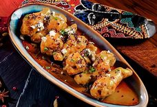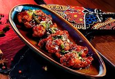 400 г • Жареные куриные крылышки в медово-горчичном соусе с дуккой.